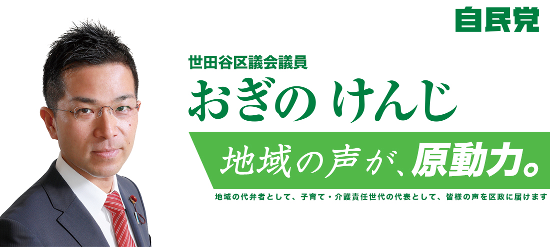 世田谷区議会議員:おぎのけんじ(荻野健司)のオフィシャルサイトです。